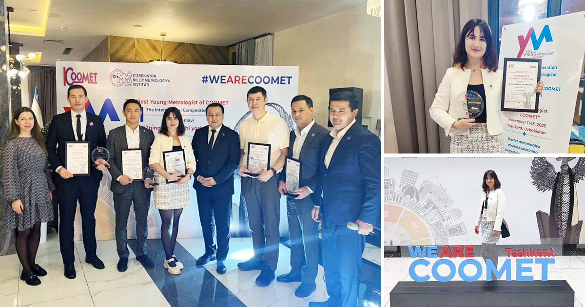 Сотрудник отделения Главного метрологического центра государственной службы времени и частоты ФГУП «ВНИИФТРИ» Анастасия Семенко одержала победу в номинации «Лучший молодой метролог в сфере научной метрологии» с докладом по теме: "Методы и средства измерения составляющих систематических сдвигов частоты оптического стандарта частоты на основе холодных атомов стронция" на XI Международном конкурсе «Лучший молодой метролог КООМЕТ», который прошел на площадке Узбекского национального института метрологии в Ташкенте, Республика Узбекистан.